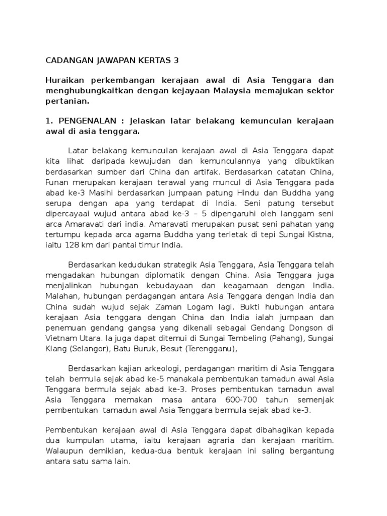 Cadangan Memajukan Sektor Pertanian Jawapan Sejarah Kertas3